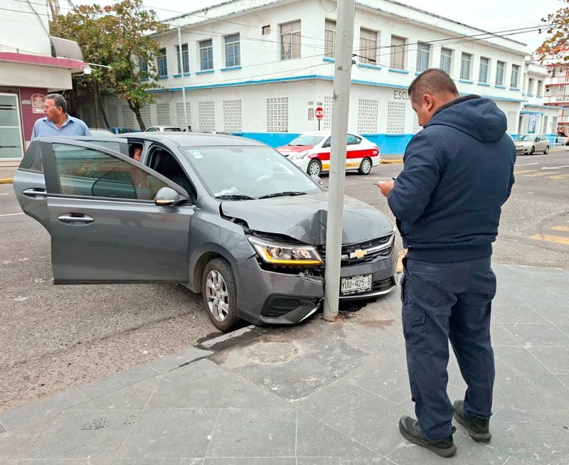 En céntricas calles de la ciudad de Veracruz, una pareja originaria de Guadalajara, en su automóvil recién adquirido, se vio involucrada en un percance vial presuntamente debido al desconocimiento de las calles.