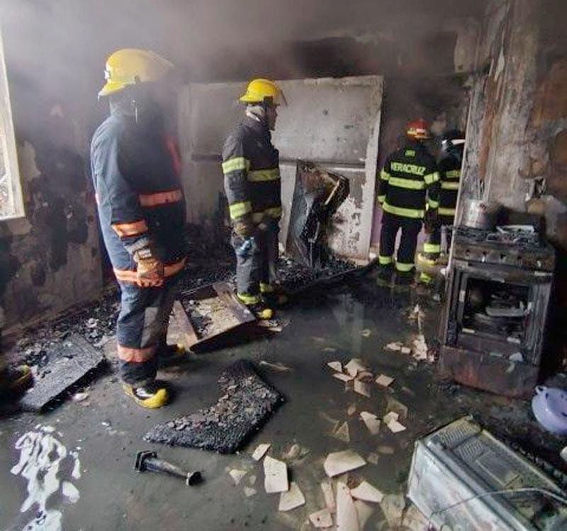 En minutos arribaron Bomberos de Veracruz, con Protección Civil, para el auxilio de las víctimas y combatir el fuego que permanecía activo en el sitio donde ocurrió la explosión por probable acumulación de gas L.P.
