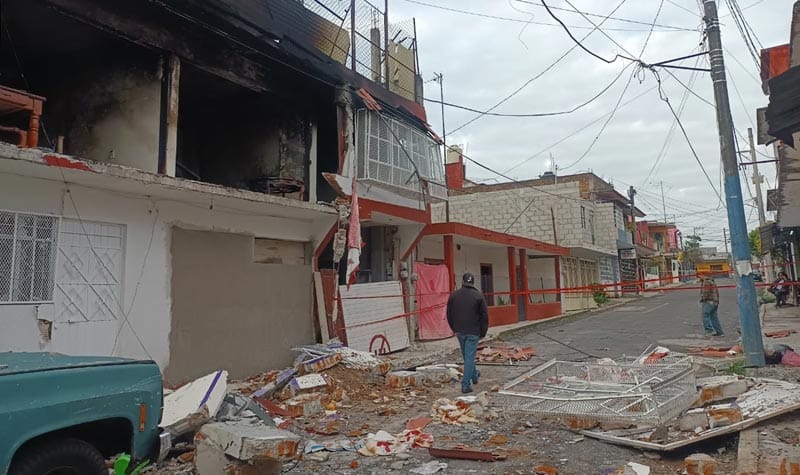 La explosión e incendio dejó saldo de dos personas lesionadas y a daños en cuando menos cinco inmuebles de vecinos, incluso resultó dañada una camioneta de marca Chevrolet a la que le cayeron escombros sobre el cofre y parabrisas.