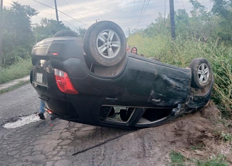 El obstáculo funcionó como una rampa, provocando que perdiera el control del volante y la unidad diera una voltereta, quedando con las llantas hacia el cielo, a unos metros del Banco del Bienestar.