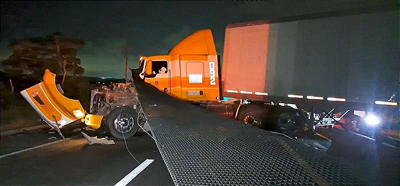 Un segundo tractocamión salió afectado por el impacto, una unidad de la empresa Transportes Vásquez, cuyo operador frenó y pegó contra el muro de contención, tras el golpe del tráiler amarillo que se le atravesó.