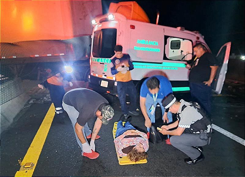 La unidad de carga llevaba un remolque tipo caja metálica y su operador perdió el control, impactando el muro de contención, invadiendo el carril contrario y colisionando con la ambulancia de frente.