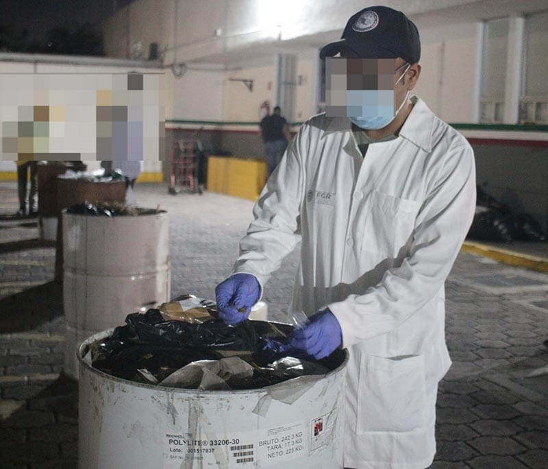 En la diligencia, nocturna, se incineraron 203 kilos 951 gramos 900 miligramos de marihuana, 964 gramos 700 miligramos de cocaína, un kilo 549 gramos 100 miligramos de Metanfetamina, 55 gramos 600 miligramos de peyote, 34 gramos 400 miligramos de Xilocaína y seis gramos de Clorhidrato de Diacetilmorfina.