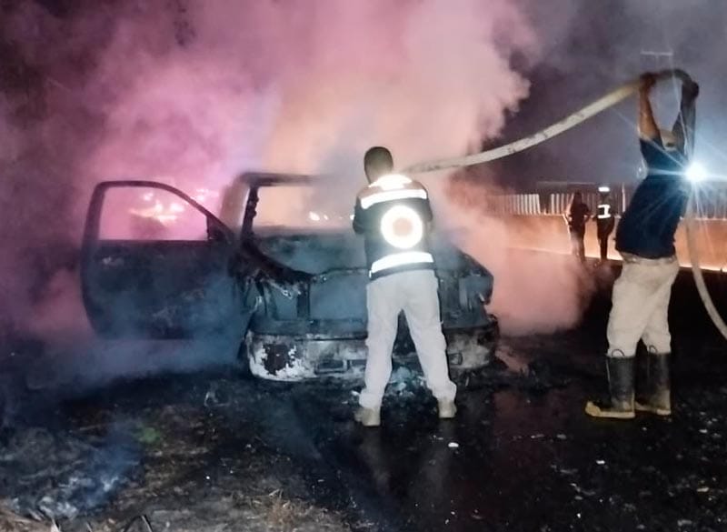 La camioneta resultó en pérdida total debido a la intensidad del fuego.