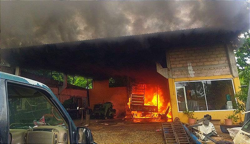 Las llamas alcanzaron una máquina de soldar, así como un enfriador, dañaron un equipo de torno y una motocicleta Italika que por poco se achicharra, solamente le derritió el faro trasero, parte del sillín y el tablero. Sin embargo, la camioneta fue pérdida total.