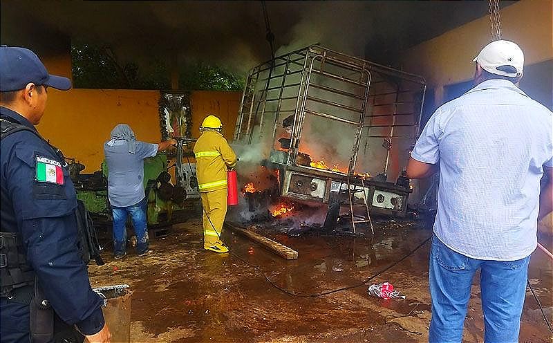 Cuando ya casi terminaba de soldar el chasis de una camioneta, marca Ford F-350 de redilas, don Miguel N, repentinamente vio como un chispazo se convirtió en una flama que en segundos envolvió la parte baja de la unidad vehicular, sin que pudiera controlar el incendio que redujo el vehículo a chatarra, dañando otros equipos que no pudo rescatar en Las Choapas.