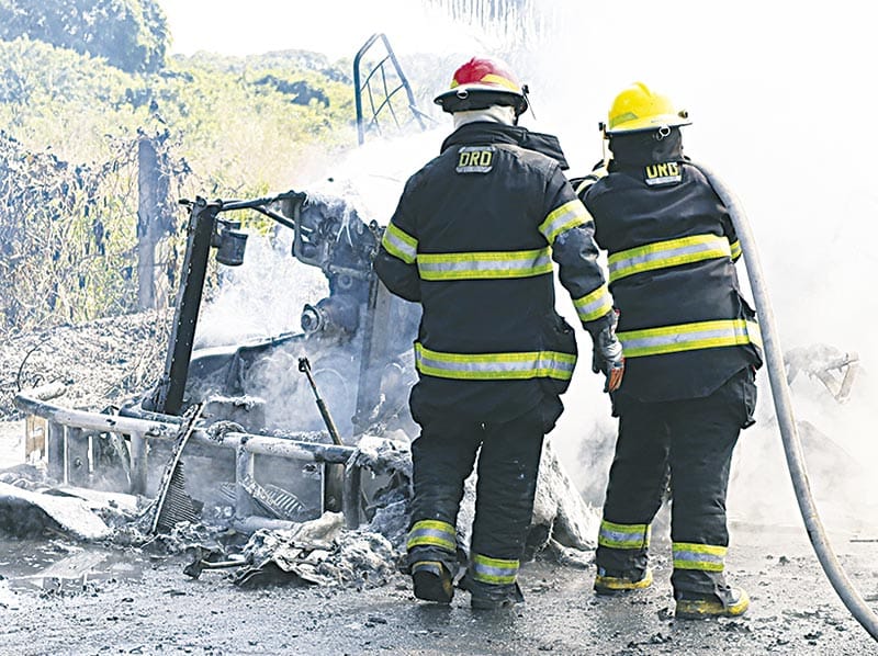 Minutos más tarde, Bomberos Municipales de Veracruz llegaron y trabajaron para sofocar el fuego que quedaba de la cabina.