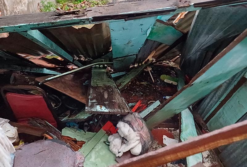 Las láminas del techo comenzaron a volar, entonces ella, y su hija de 15 años de edad, se dirigieron a la cocina para resguardarse del agua. Sin embargo, los fuertes vientos también destruyeron el techo.