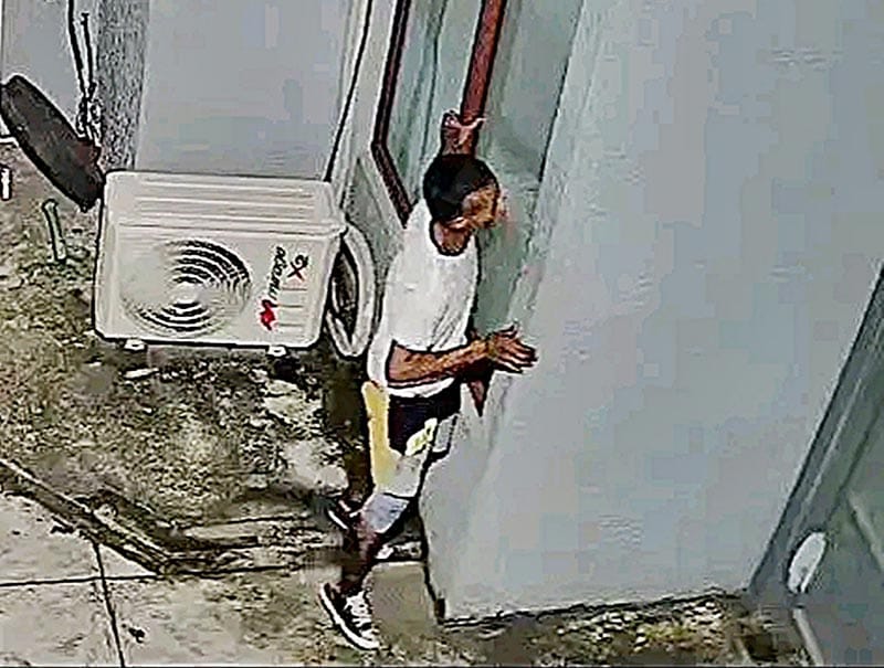 Cámaras de vigilancia, instaladas en los inmuebles, grabaron el momento que el “jaulero” sube por una pared, vestido con una playera en color claro, una bermuda negra con amarillo, y unos zapatos negros tipo tenis, sin que nadie lo vea.