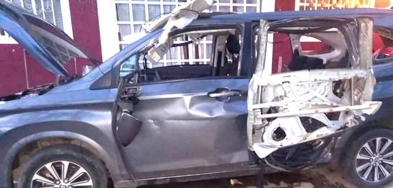 A causa de la explosión, provocada por una granada que lanzaron hombres desconocidos, la camioneta registró daños severos en las puertas y en el toldo, además en otras partes, sin que se reportaran personas lesionadas.
