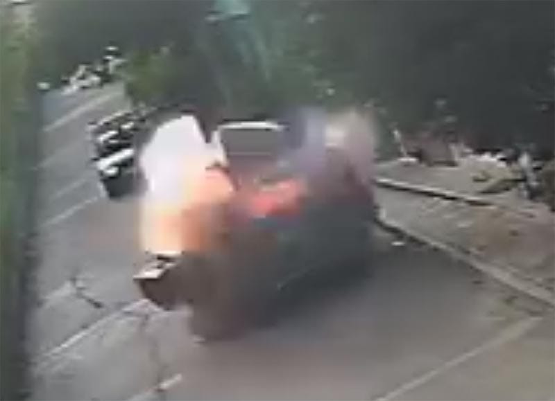 Cámaras de seguridad grabaron el momento en que explotó la Toyota que se hallaba estacionada en Allende esquina 16 de Septiembre.