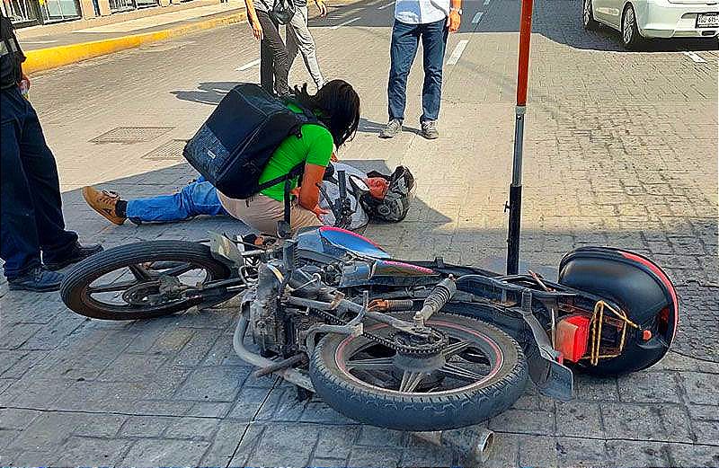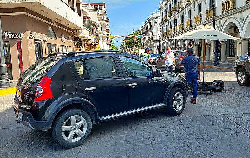 En céntricas calles de la ciudad de Veracruz, ocurrió un percance entre un motociclista y un carro compacto, a unos metros del palacio municipal, generando la presencia de los cuerpos de emergencia y agentes de vialidad.
