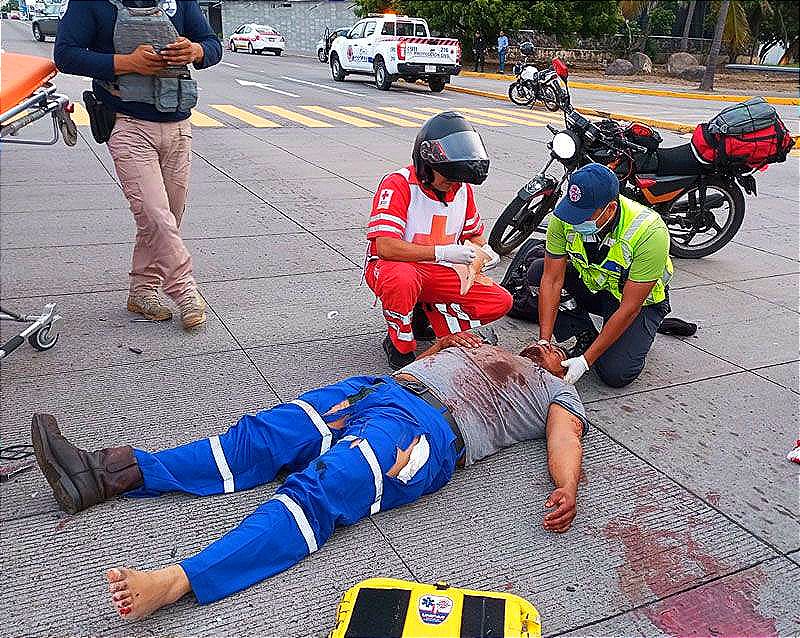 A la altura del fraccionamiento Costa de Oro, en Boca del Río, un trabajador de CICE se accidentó accidente sobre el bulevar Adolfo Ruiz Cortines, quedando con severos golpes y la presencia de las autoridades municipales de vialidad y de emergencia.