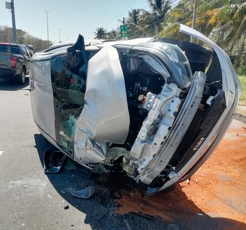 * Por el impacto el vehículo responsable conducido por una ‘influencer’ volcó sobre su costado derecho en la carretera federal Boca del Río-Paso del Toro