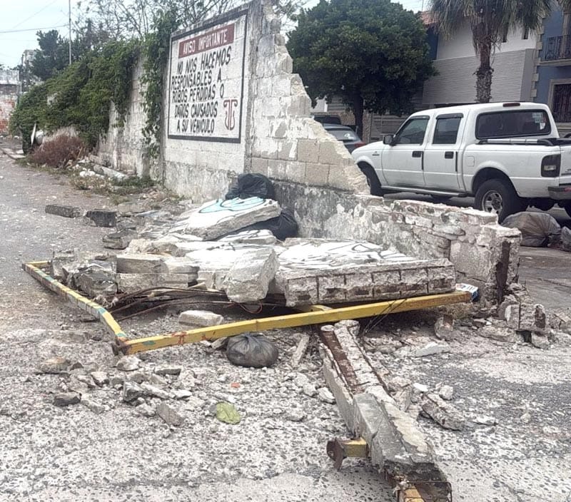 Las fuertes rachas de viento por el frente frío número 41 provocaron que la estructura de tabiques se partiera y se viniera abajo.