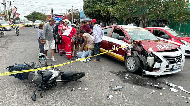 En calles de la colonia Playa Linda, en la ciudad de Veracruz, un motociclista acabó en estado delicado luego de colisionar contra el costado de un taxi, generando la movilización de los cuerpos de emergencia.