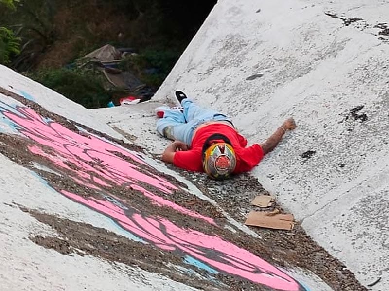 El cuerpo fue localizado en la cuneta central de la vialidad, en los carriles con dirección al fraccionamiento Colinas de Santa Fe, junto a una motocicleta de la marca Italika.