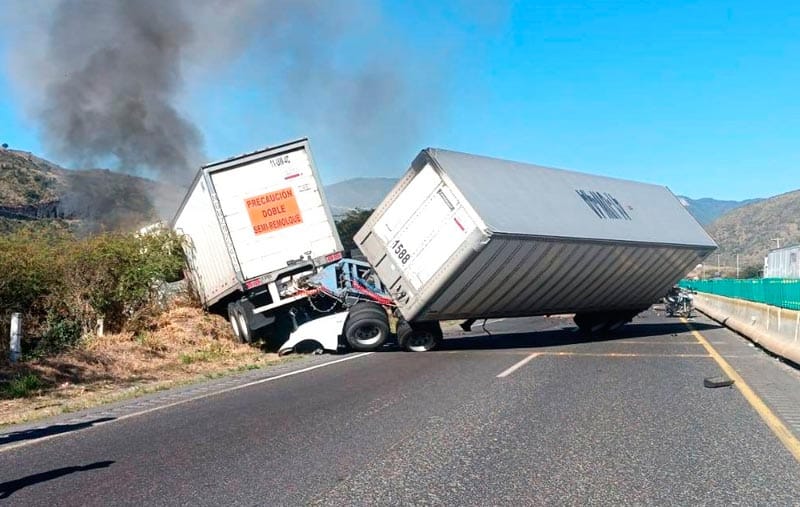 Dos tractocamiones chocaron el sábado cuando descendían por las Cumbres de Maltrata, en la recta de la congregación Balastrera, generándose el incendio de una unidad y, después, hubo actos de rapiña con colchones y motocicletas.