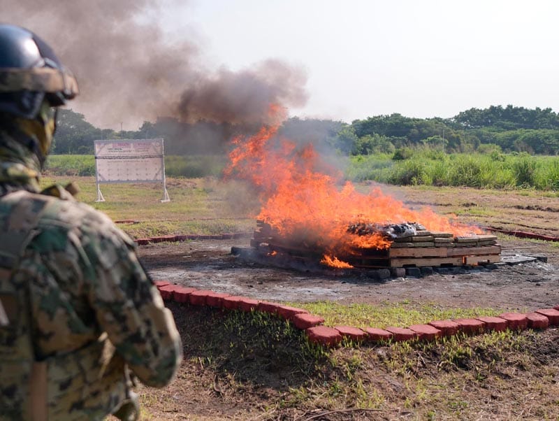 Para la destrucción de la droga, la FGR contó con el apoyo institucional de la Secretaría de Marina-Armada de México (SEMAR), bajo supervisión del OIC, para dar certeza del tipo y peso de los narcóticos.