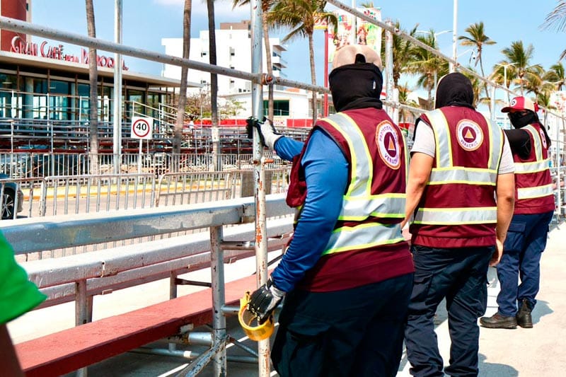 Personal de Protección Civil municipal de Veracruz realizó la supervisión de las gradas instaladas en los 3.5 kilómetros sobre el Boulevard Manuel Ávila Camacho, para verificar cumplan con condiciones de seguridad y así prevenir riesgos durante los paseos del Carnaval de Veracruz 2026.