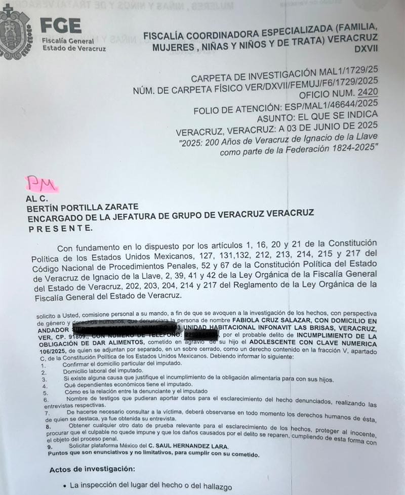 Lo anterior quedó radicado dentro de la carpeta de investigación MAL1/1729/25 en agravio de un menor, ya adolecente, representado por su madre Fabiola Cruz Salazar.