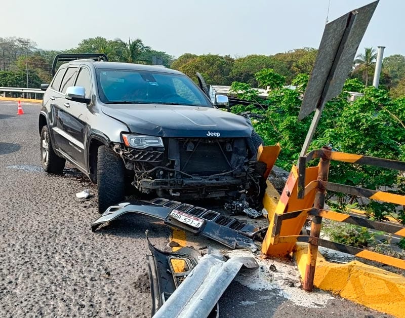 A la altura del distribuidor vial de J. B. Lobos, a un costado de la carretera federal Veracruz-Xalapa, una camioneta marca Jeep, acabó incrustada contra la barra de contención tras perder el control, salvando de caerse al vacío.