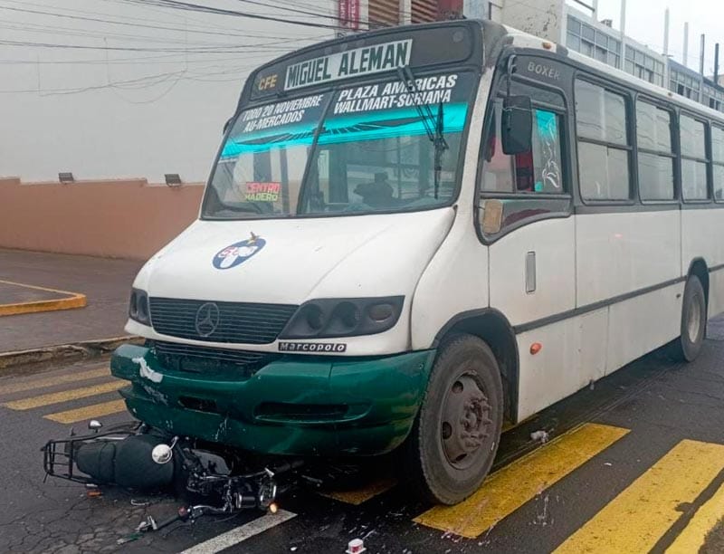 Aldo G. resultó gravemente lesionado el lunes en un accidente ocurrido en el fraccionamiento Jardines de Virginia, en Boca del Río, donde la motocicleta que conducía fue arrollada por un autobús urbano de la ruta Miguel Alemán.