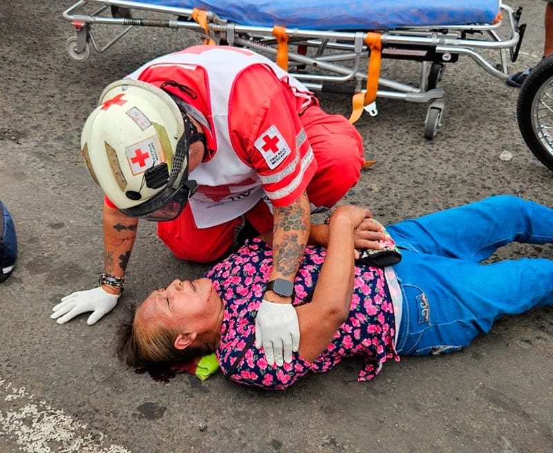 Evangelina cayó y se golpeó la cabeza con el pavimento, por lo que fue ayudada por ciudadanos y oficiales de Tránsito Municipal de Veracruz que abanderaron la zona.