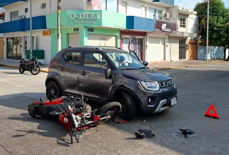A la altura del fraccionamiento Virginia en Boca del Río, hubo un percance vial, donde la conductora de una camioneta causó un choque con un motociclista que estaba a tres cuadras de llegar a su trabajo.