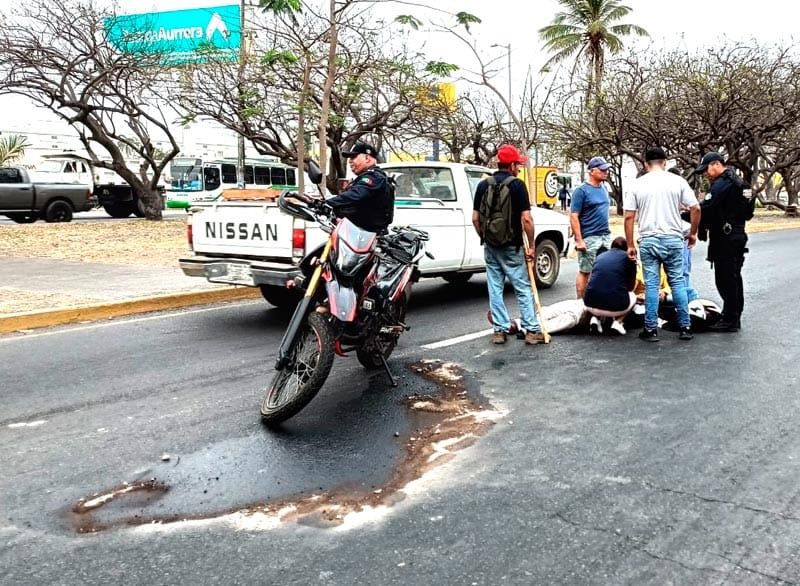 Por el fuerte impacto cayó al asfalto y resultando con diversas lesiones, por lo que ciudadanos se acercaron para ayudarlo.