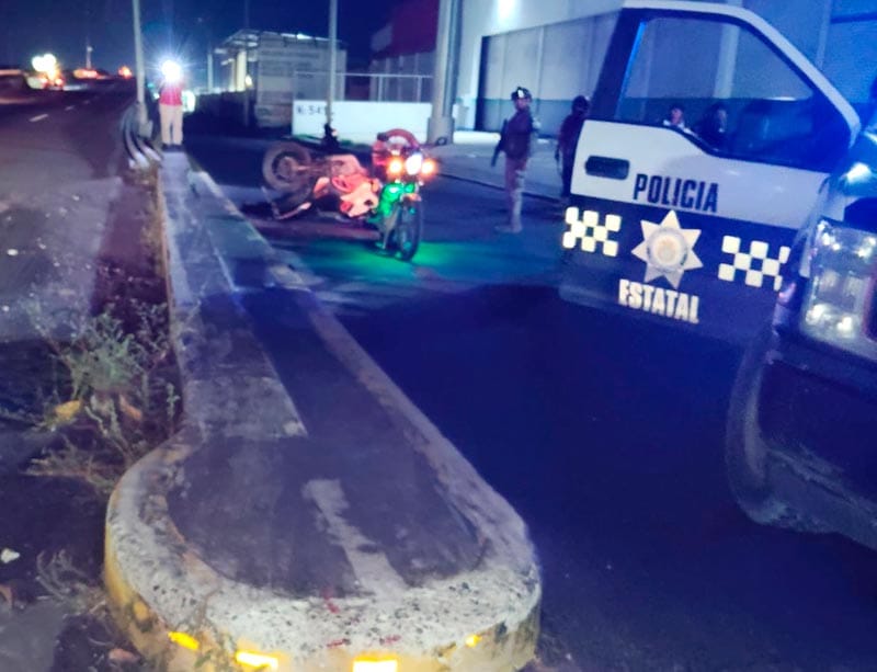Al no lograr maniobrar de forma correcta, el motociclista se subió al barandal del puente y posteriormente derrapó sobre el pavimento.