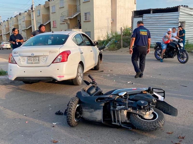 En el fraccionamiento Lomas de Río Medio 4, al norte de la ciudad de Veracruz, hubo un fuerte accidente donde un motociclista resultó con lesiones graves luego de impactarse contra un automóvil.