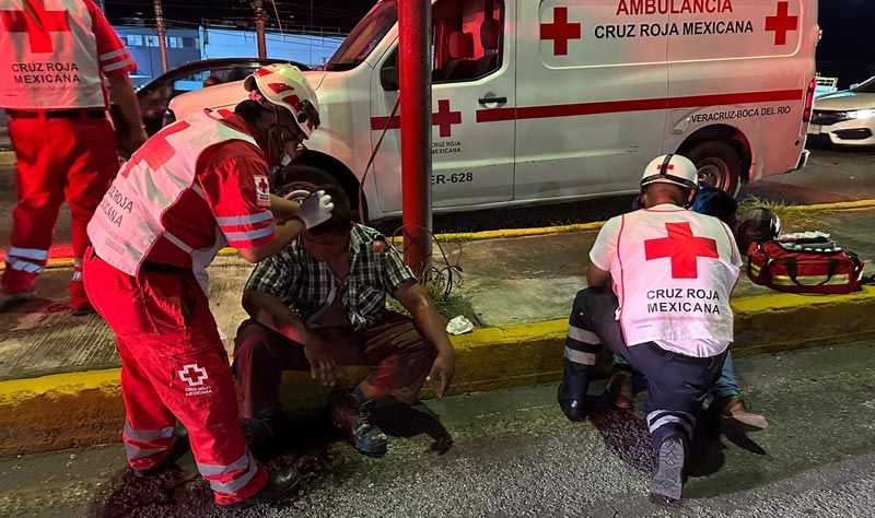 En la zona del distribuidor vial de la Cabeza Olmeca, al sur de la ciudad de Veracruz, dos motociclistas terminaron lesionados tras colisionar, logrado ser auxiliados por paramédicos de la Cruz Roja.