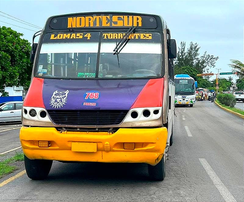 El camión de pasajeros, un Mercedes Benz con placas A18698X del servicio público del estado de Veracruz, marcado con el número económico 768 y conducido por Alan Domingo Covarrubias Mora, no logró frenar a tiempo y colisionó con la motocicleta.