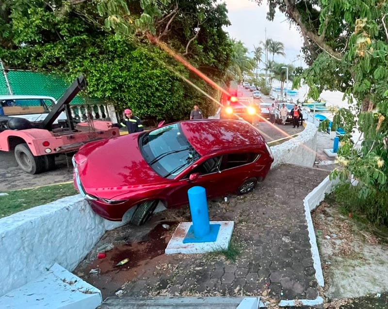 Boca del Río, Ver. — Lo que parecía ser una noche de fiesta casi termina en tragedia este jueves, luego de que un grupo de jóvenes en presunto estado de ebriedad perdieran el control de su camioneta y estuvieran a punto de caer al mar, en la parte trasera del palacio municipal de Boca del Río.