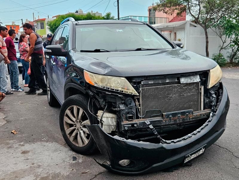 A la altura de la calle Río Tula, la conductora de una camioneta, marca Kia, tipo Sorento intentó retornar para dirigirse a su domicilio, pero no se percató de los motociclistas, provocando la colisión.