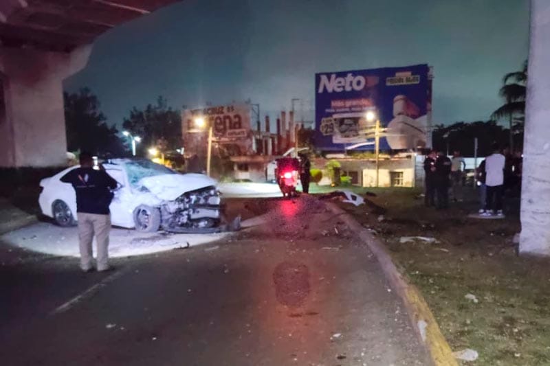 Esto se dio la madrugada del domingo en la avenida Ejército Mexicano, en donde iba el vehículo marca Volkswagen, tipo Jetta, color blanco, a exceso de velocidad, y de pronto perdieron el control y se fueron contra uno de los pilares de concreto del distribuidor de La Boticaria