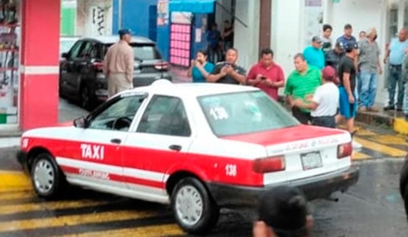 Sin mediar palabras, el copiloto de la moto disparó en varias ocasiones en contra del taxista, el cual perdió el control y prácticamente el auto chocó con la banqueta del negocio Prendamex.