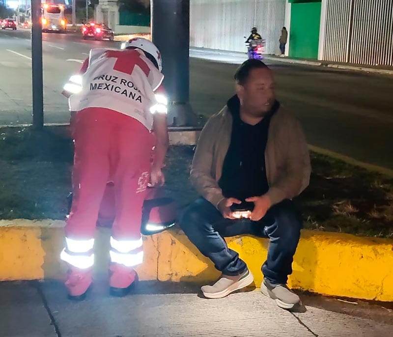 Paramédicos de la Cruz Roja acudieron y auxiliaron a una persona, que iba como pasajera, ya que resultó lesionada en diferentes partes del cuerpo.