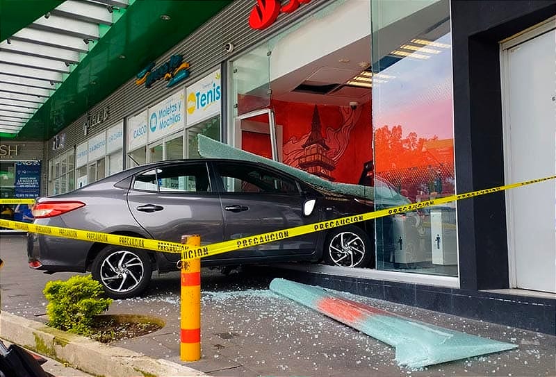 El reporte policial indica que el automovilista habría acelerado en lugar de frenar e irrumpió en la zona de cajeros del Santander Select, provocando que colapsara una enorme puerta de cristal, a las 09:40 horas.