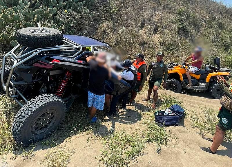 Otro apoyo en los que intervinieron los elementos de la SSP fue a través de la Compañía marítima de Fuerza Civil y Policía Vial, brindan asistencia a persona que sufrió accidente en las Dunas de Chachalacas, municipio de Úrsulo Galván.