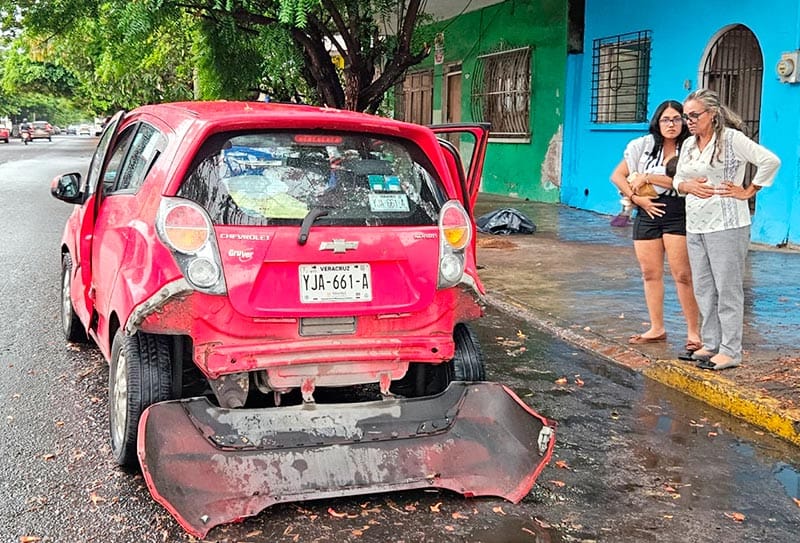 En céntricas calles de la ciudad de Veracruz hubo un fuerte accidente entre un taxi y un carro particular, dejando a un menor de edad y una mujer de la tercera edad lesionados.