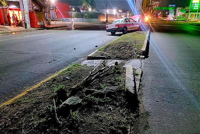 Esto se dio en la avenida Ejercito Mexicano, en la madrugada de este miércoles, donde iba la unidad económico VB-5552, marca Nissan, tipo Tsuru del servicio de taxi, pero a la altura de la curva, perdió el control, y se subió al camellón.