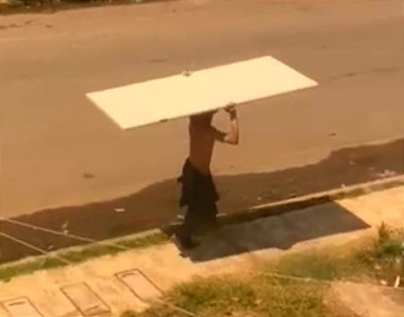 Al verse sorprendido se echó a correr, pero cargando una puerta.