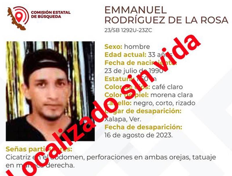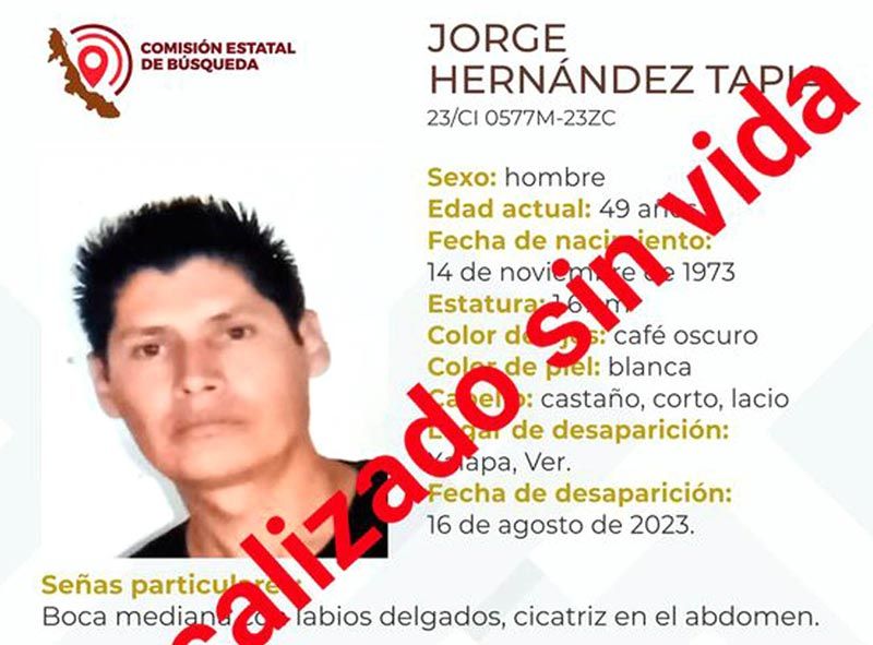 Otros dos cadáveres correspondían a Jorge Hernández Tapia, de 49 años, y a Emmanuel Rodríguez de la Rosa, de 33 años, ambos desaparecidos el 16 de agosto del 2023 en Xalapa, según ficha de la Comisión Estatal de Búsqueda.