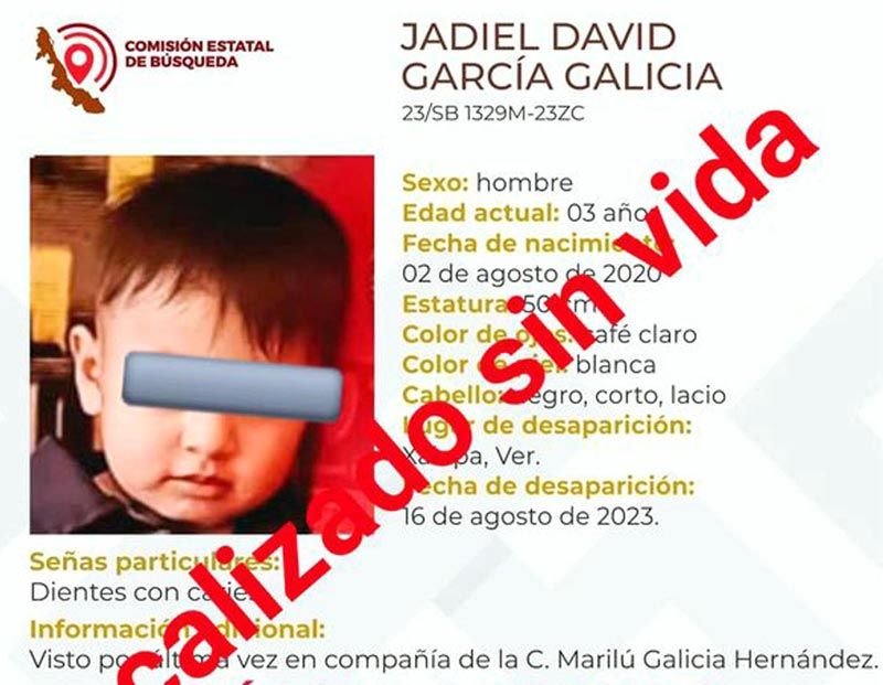 Los estudios forenses permitieron establecer que dos de las víctimas eran la señora Marilú G.H., de 21 años, y su pequeño hijo Jadiel David, de tres años, desaparecidos en Xalapa desde el pasado 16 de agosto del 2023.