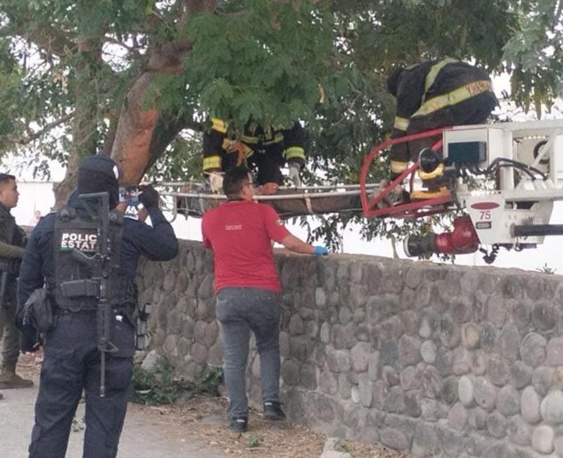 Con apoyo de los Bomberos Municipales y la unidad escala, fue como lograron b@j@r el cuerpo para posteriormente trasladarlo al Semefo, donde se confirmará su identificación.