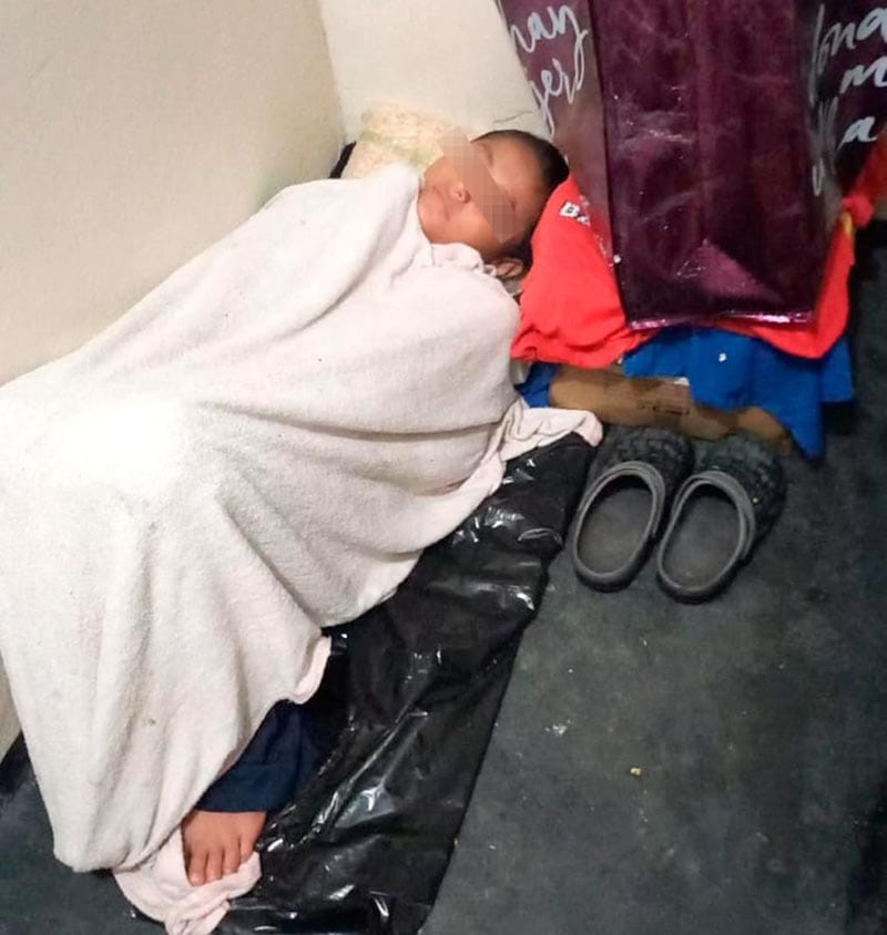 El menor estaba tapado con una sábana y sobre una bolsa negra que puso como cama, además sus pertenencias a un costado entre ellas, su mascota un “cuyo” dentro de una cajita.
