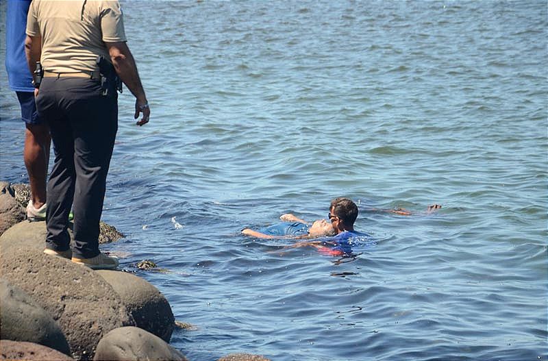 Las personas que iban pasando vieron a un hombre florando en el mar, a la altura de las piedras en la zona de Playa Regatas, reportando a los guardavidas.
