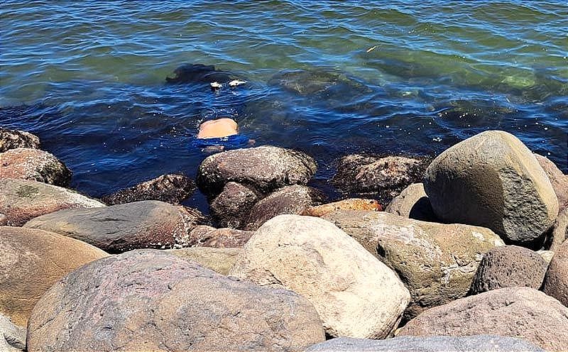 En el sitio había una mochila de color rojo con negro junto a las piedras, y a unos metros en el mar el cuerpo de la persona del sexo masculino, no identificado.